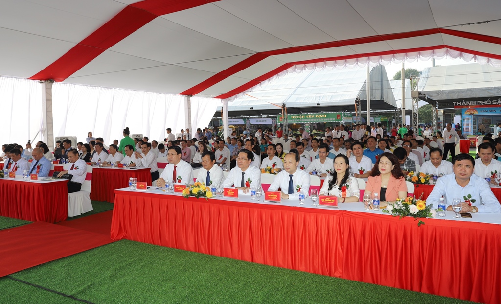 Dự lễ khai trương có các đồng chí: Phùng Đức Tiến - Thứ trưởng Bộ Nông nghiệp và Phát triển nông thôn; Phạm Thị Thanh Thủy - Ủy viên Ban Thường vụ, Trưởng ban Dân vận Tỉnh ủy, Chủ tịch Ủy ban MTTQ tỉnh; Nguyễn Quang Hải - Tỉnh ủy viên, Phó Chủ tịch HĐND tỉnh; Lê Đức Giang - Tỉnh ủy viên, Phó Chủ tịch UBND tỉnh; đại diện Cục Chế biến và Phát triển thị trường nông sản; các sở, ban, ngành, huyện, thị xã, thành phố trong tỉnh; các doanh nghiệp, HTX, trang trại trong và ngoài tỉnh.