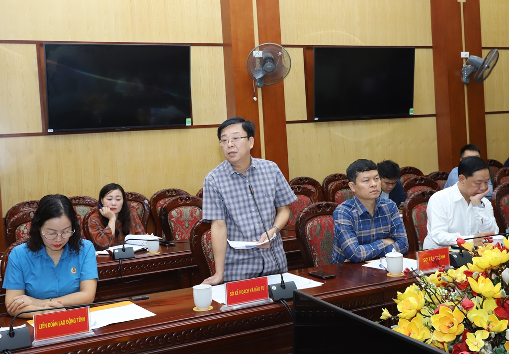 Đại diện lãnh đạo các sở, ngành của tỉnh phát biểu ý kiến tại buổi làm việc.