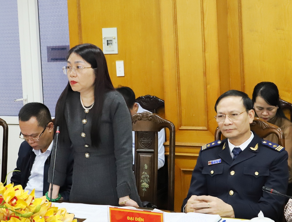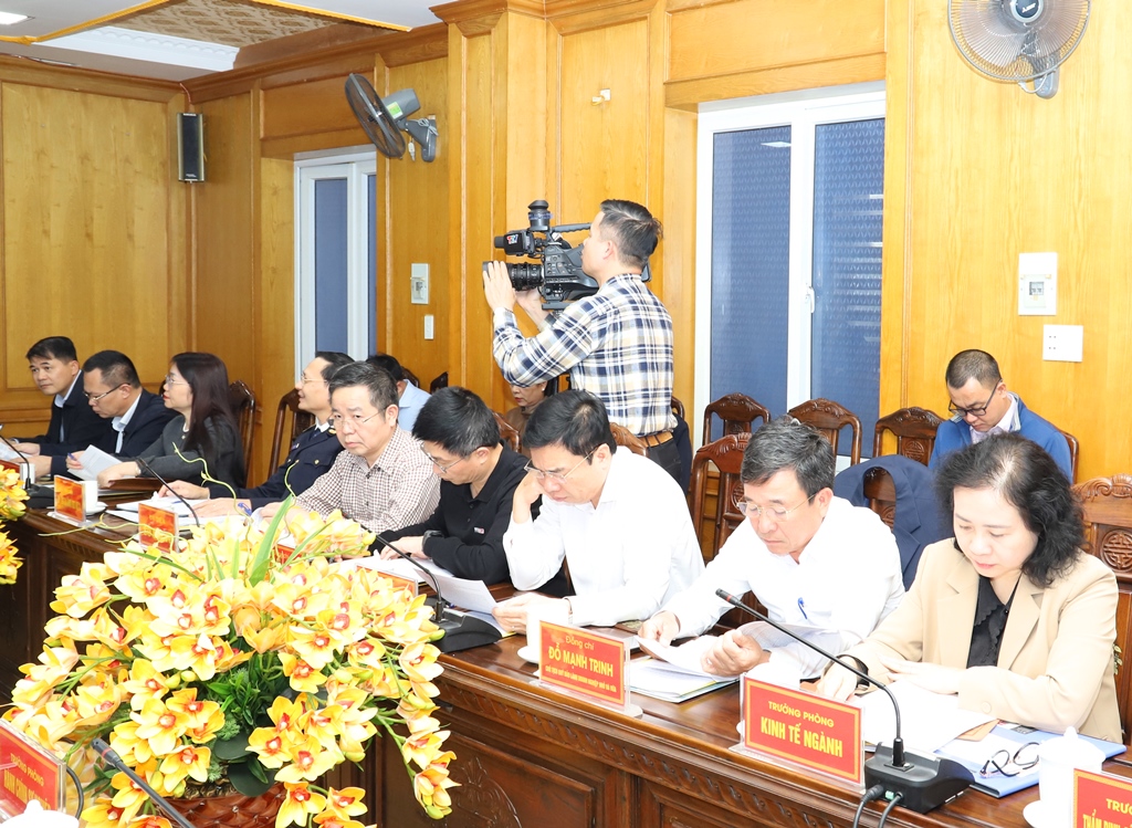 | Đại diện lãnh đạo các ngành tham gia ý kiến tại buổi làm việc. |