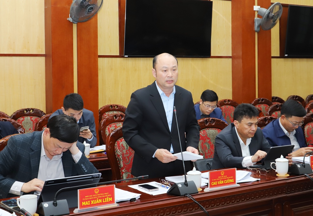 | Phó Chủ tịch UBND tỉnh Cao Văn Cường phát biểu tại phiên họp. |