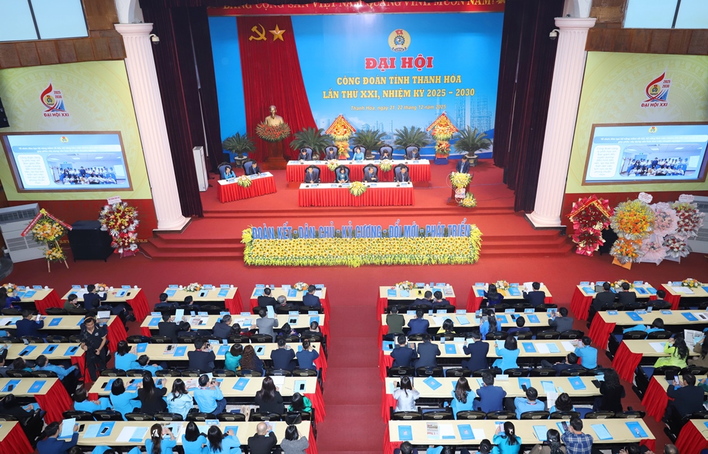 Sáng ngày 22/12/2025, tại Trung tâm hội nghị 25B (phường Hạc Thành), Liên đoàn Lao động (LĐLĐ) tỉnh Thanh Hóa long trọng tổ chức Đại hội Công đoàn tỉnh Thanh Hóa lần thứ XXI, nhiệm kỳ 2025-2030.