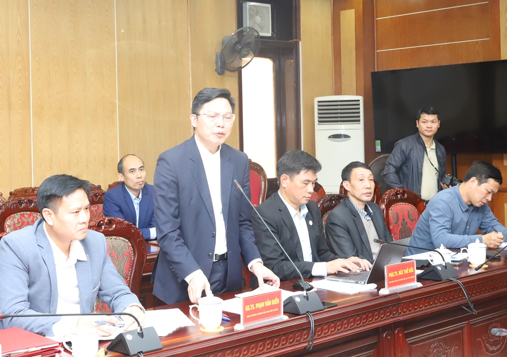| GS. TS Phạm Văn Điển, Hiệu trưởng Nhà trường phát biểu tại buổi làm việc. |