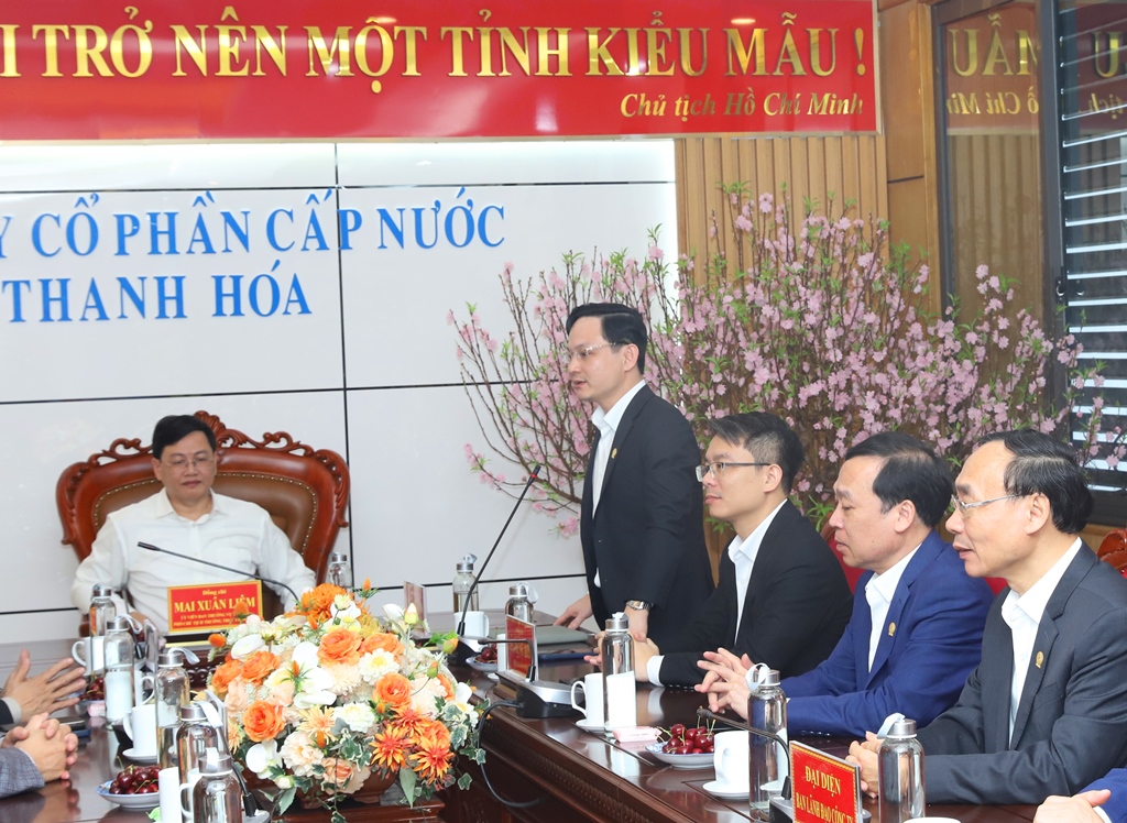 Phó Chủ tịch Thường trực UBND tỉnh đề nghị Công ty CP Cấp nước Thanh Hóa tiếp tục kiện toàn nhân sự, tăng cường ứng dụng khoa học - công nghệ, chuyển đổi số trong quản lý mạng lưới cấp nước; nâng cao năng lực dự báo, điều tiết nguồn nước; kiểm soát thất thoát, thất thu.