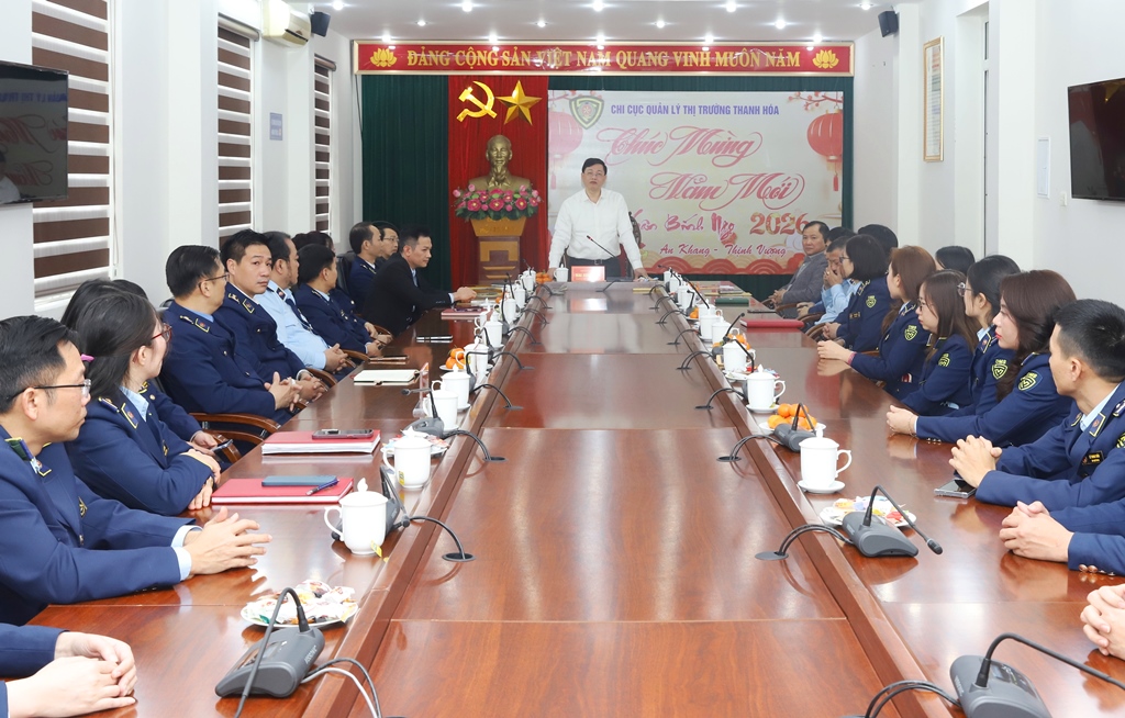 Tại Chi cục Quản lý thị trường Thanh Hóa, Phó Chủ tịch Thường trực UBND tỉnh đề nghị đơn vị tiếp tục bám sát diễn biến cung - cầu, tăng cường kiểm tra, kiểm soát thị trường trước, trong và sau Tết; kiên quyết đấu tranh với buôn lậu, gian lận thương mại, hàng giả, đầu cơ găm hàng, nâng giá bất hợp lý các mặt hàng thiết yếu; đặc biệt là các mặt hàng thực phẩm có nhu cầu tiêu thụ cao trong dịp Tết.