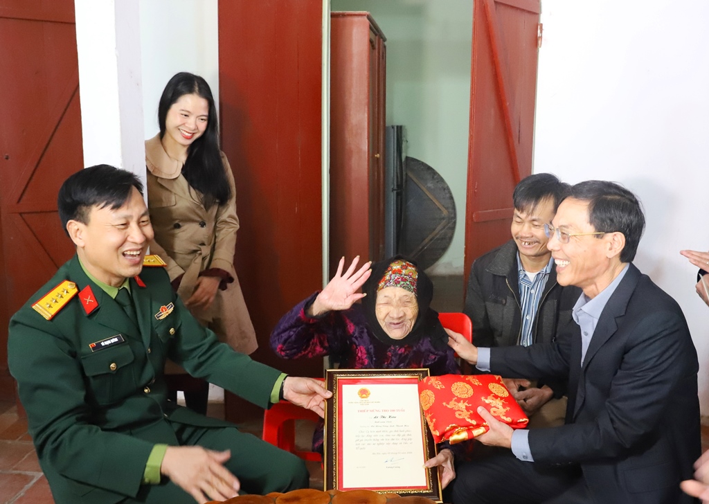 Thăm, tặng quà, trao Thiệp chúc thọ của Chủ tịch nước cho cụ Lê Thị Kiêu, tròn 100 tuổi (thôn Minh Sơn, xã Nông Cống); thăm, tặng quà gia đình bà Ngô Thị Vút (thân nhân liệt sĩ, thôn Lê Xá 1, xã Nông Cống).